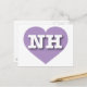 This postcard features a shapely and cool lavender heart containing the bold, white, upper case letters NH, the official abbreviation for New Hampshire, the granite state. The reverse side of the postcard is blank, awaiting your handwritten sentiments or customised text.