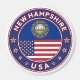 Badge of New Hampshire with flag of New Hampshire and flag of USA colors, rounded shape.