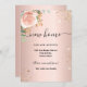 A rose gold faux metallic looking background decorated with rose gold and blush pink watercolored floral, ecalyptus greenery, faux gold botanical sprigs, foliage and golden glitter dust. With the thext: New Home. Personalise and add your new address and name.