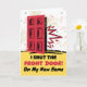 New home and address announcement, paper greeting card. Features a red front door being closed or shut. Has a cute message inside. I shut the front door! Change the lower text on the cover and add your new address inside. Art, image, and verse copyright © Shoaff Ballanger Studios, 2024.