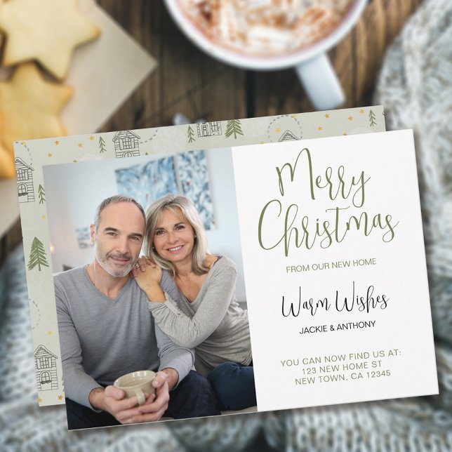 New Home and Pine Tree Doodle Vertical Photo Holiday Card