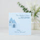 The design features artwork of a blue home along with customisable typography fields detailing a moving to a new home announcement and a housewarming party invitation.