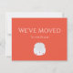 We've Moved Beach Orange Moving announcement card. With a simple typography and sand dollar design, black and white lettering can be personalised with your information. Great for letting loved ones know about your new address.