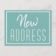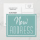 Beautiful New Address postcard moving announcement for a family moving to a new home. A classy teal typography just moved card to announce your new contact details.