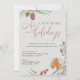 Traditional nature themed 2-in-1 holiday moving announcement and christmas card, with watercolor design and elegant calligraphy. The design features a christmas red robin, winter berries, pine branches and pine cones. It is lettered with "a new home for the holidays" and you can personalise with a greeting, your new address and names.
