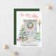 All in one holiday moving announcement and christmas card personalised with your new address and christmas greeting. It is lettered with New Home for the Holidays in casual handwriting. The watercolor design features a festive front door with wreath, your door number, christmas tree, presents, snowman and lantern.