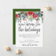A modern "New Home for the Holidays" moving announcement card. Featuring a watercolor Christmas arrangement illustration with Christmas flowers, pine cones and greenery. Personalised with your message of preference, your new address, and signature