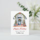 Celebrate the joy of the season and the excitement of a new chapter in your life with our elegantly designed Modern Christmas Moving Announcement postcard. This charming card features a beautifully hand-painted watercolor illustration of a front door adorned with festive holiday decorations, setting the perfect scene for a warm and welcoming message. The graceful typography script reads "Happy Holidays from Our New Home," adding a touch of classic holiday cheer. Your family name is prominently displayed on the front, making it uniquely yours.
