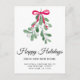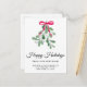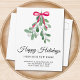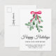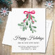 Are you moving to a new home this festive season? This botanical moving announcement postcard lets family and friends know your new address. It is decorated with watercolor mistletoe, red ribbon, and Happy Holidays in stylish script typography.