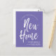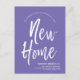 A minimal solid Lavender and white script-style moving announcement postcard.  It features a large script text of the words "New Home" followed by your address information below it.  Most individual elements of the invite card are unlocked so feel free to change or add any details necessary by using the customisation function.  You can even add a photo to the reverse side and add a black and white filter to it if you please instead of a message.