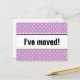 New home moving postcard lavender purple and white polkadots Custom moving text; We have moved! Add your new address on the back. Modern moving cards for home and business.