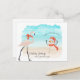 New Home Cute Sandy Snowman Flamingo on Beach Holiday Moving Announcement Postcard... "Sand is the New Snow" is the caption in sans serif text on our cute holiday new address card featuring a sandy beach, a flamingo in a red winter scarf, and a "snowman" made of sand wearing a Santa hat. The greeting on front of the card reads "Holiday Greetings from our New Home" in script and sans serif typography. The back of the card contains all the details your family and friends will need to know about your move to a warmer climate... Florida? California? All text can be easily revised on the personalisation template.