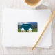 A cosy stylish homestead with a teal coloured roof and lighter siding. Green grass and mountains in the background with a sunny blue sky. Customise with all of your new address information as desired.