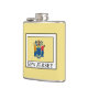 The flask itself is fine. It’s a cheap flask, obviously bought in bulk, however am prepared to overlook that. Given that it is a personalized item, I would have liked to have seen gift boxing instead of the generic packaging. Terrible printing, and/or quality. It’s a cheap, tacky vinyl. It is not cut straight and is also applied in a way that it is overhanging the bottom, causing the glue to catch on items and it will eventually roll and tear, damaging the wrap.