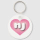 This key chain features a pink heart with a white-washed centre containing the bold, rounded, white lower case letters nj, a playful version of the abbreviation for New Jersey, the garden state.