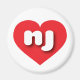 This magnet features a vibrant red heart containing the bold, white, rounded lower case letters nj, a playful abbreviation for New Jersey, the garden state.