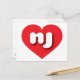 This postcard features a vibrant red heart containing the bold, white, rounded lower case letters nj, a playful abbreviation for New Jersey, the garden state. The reverse side of the postcard is blank, awaiting your handwritten sentiments or customised text.