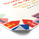 "New kid on the block" baby shower theme featuring border of houses and buildings in bright colours with bold text at centre.