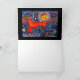 This custom Santa Fe influenced fine art graffiti folded greeting card design features a New Mexican Spanish themed Tasmanian Tiger Devil dog with cats.