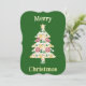 Vibrant colored letters, trees, holly and cancy canes in a cheerful message suitable for a non-religious holiday greeting. I especially liked it on the black background which made the design pop.