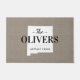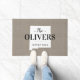 Modern farmhouse personalised doormat with your family name inside your state map. Faux burlap canvas texture background. Click Customise It to add your own text and images and create a unique one of a kind design!