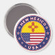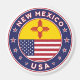 Badge of New Mexico State with flag of New Mexico State and flag of USA colors, rounded shape.