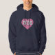 This hooded sweatshirt features a vibrant pink heart containing the bold, white, upper case letters NM, the official abbreviation for the state of New Mexico, thecland of enchantment.