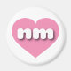 This magnet features a vibrant pink heart containing the bold, white, rounded lower case letters nm, a playful abbreviation for New Mexico, the land of enchantment.
