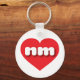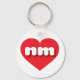 This keychain features a vibrant red heart containing the bold, white, rounded lower case letters nm, a playful abbreviation for the state of New Mexico, the land of enchantment.