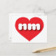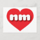 This postcard features a vibrant red heart containing the bold, white, rounded lower case letters nm, a playful abbreviation for New Mexico, the land of enchantment. The reverse side of the card is blank, awaiting your personalised text or handwritten sentiments.