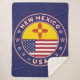 Badge of New Mexico State with flag of New Mexico State and flag of USA colours, rounded shape.
