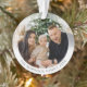 New modern style, double sided, two photo, round acrylic ornament. On the front side, this custom ornament design features your personal photo highlighted in a unique delicate white gradient frame. The designs modern typography displays your family name and the year or can be edited to read anything you like. The text is in a warm bronze colour which also can be easily edited to any colour of your choosing. The back of the ornament fully displays your second photo. The perfect keepsake gift and tree décor for the holidays & Christmas.