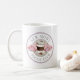 Featuring the humourous text "New Mum Social Club - Coffee is our only hope now", this funny mug features sweet pink and purple watercolor graphics of pink flowers, coffee cup and coffee beans. An ideal baby shower gift or new mum accessory.