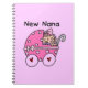 An adorable design featuring a baby girl in a pink carriage on New Nana keepsake boxes, tiles, ornaments, notebooks, mugs, cards, stickers, tote bags, keychains, magnets, and other New Nana clothing and gifts!