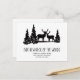 Let friends and family know your new address with these rustic black and white moving announcements. The design features two deer surrounded by pine trees, silhouetted in black on a white background, above the words "Our New Neck of the Woods" in hand-printing font. Add your name and new address below.
