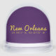 Domed snow globe features New Orleans longitude and latitude coordinates in gold text on purple background - the colours of Mardi Gras.  What a great travel keepsake!