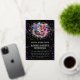Customisable New Orleans bachelorette weekend itinerary invitation. Featuring a colourful Mardi Gras masquerade mask and glitter print on a black background with gold foil lettering. On the reverse there is a template for you to customise with your own itinerary details.