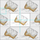 Fabric features an original marker illustration of a New Orleans style beignet pastry topped with powdered sugar.