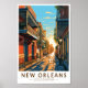 New Orleans retro vector travel design. Nicknamed the "Big Easy," it's known for its round-the-clock nightlife, vibrant live-music scene and spicy, singular cuisine reflecting its history as a melting pot of French, African and American cultures.