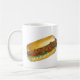 Ceramic mug features an original marker illustration of a classic cajun shrimp po'boy sandwich.