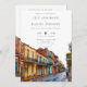 This elegant New Orleans skyline watercolor wedding invitation can be personalised with your information in chic typography with your wedding website QR code on the reverse. Designed by Thisisnotme©