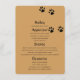 This dog paw menu is a fun idea and is perfect for your new pet party. It has high resolution black paw prints on the front and back. There are also templates for four starters, four mains and four desserts ready for your menu selection. You have the added fun of changing the background colour, you can do this from the customise button and on the lower right you will see a grid of new colours to pick from.