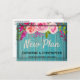 This pretty rustic New Plan Wedding Postponement postcard features a blue wood background with trendy typography decorated with a rose watercolor floral bouquet with green leafing. Customise the font and colour of the text to your liking.