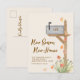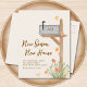 This fall moving announcement postcard features a watercolor mailbox and autumnal leaves on a cream background. It says "New Season New Home" in stylish typography. Easily customisable with your new address and house number on the mailbox. Original Watercolor © Michele Davies.