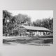Old photo of railroad station, surrounded by moss-covered trees and horse-drawn wagons, New Smyrna, Florida, 1904.
