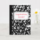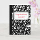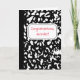 This personalised greeting card is ready to be customised with your own message on the front and the inside so that you can use this for any occasion. This card has the look of a classic black and white marble composition notebook with a space to add your own message in red lettering against a white label shaped background. The inside has the look of a notebook page with ruled lines and your message in black lettering. With its academic style it's a perfect card to congratulating a new teacher or writing a custom thank you message for your teacher at the end of the school year.