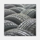 Photograph of neatly packed new tires. Printed to edges of magnet.