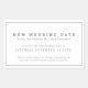 Wedding or event new date sticker. A simple text grey and white sticker. Ideal to place on the outside or on to your existing invitations. Let your guests know that your wedding or other event has been postponed due to unforeseen circumstances. Other matching items are available. Designed by www.mylittleeden.com