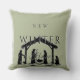 A quiet tribute to hope’s arrival in the hush of winter. This soft green pillow features a silhouetted nativity scene—Mary, Joseph, and the child beneath a humble shelter—rendered in elegant simplicity. The phrase “New Winter Hope” is gently layered above and within the design, with “Hope” softly entwined into the silhouette, offering a visual breath of reverence and peace.