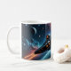 A starship flies over a new planet on this outer space themed mug. Perfect for anyone who loves starships, science fiction, and space exploration.